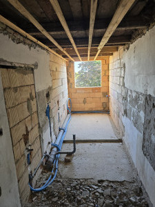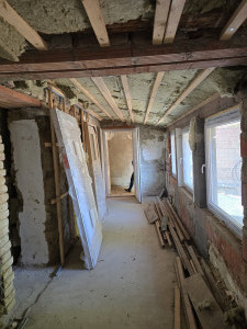 A külső szigetelés, vakolat, , fűtésrendszer és burkolatok már az új tulajdonosra várnak.Villanyvezetékek cseréje előkészítve.